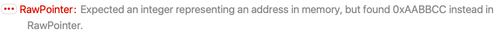 "Address" memory address "Type" referenced type - Properties of a RawPointer can be extracted with RawPointer[…][prop].