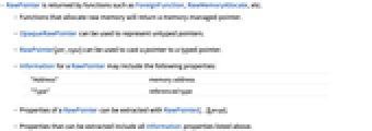 - RawPointer is returned by functions such as ForeignFunction, RawMemoryAllocate, etc.
