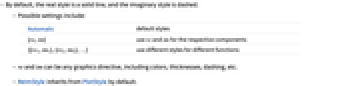 Automatic default styles {re,im} use re and im for the respective components {{re1,im1},{re2,im2},…} use different styles for different functions - re and im can be any graphics directive, including colors, thicknesses, dashing, etc.