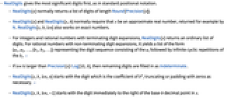- RealDigits[x] normally returns a list of digits of length Round[Precision[x]].