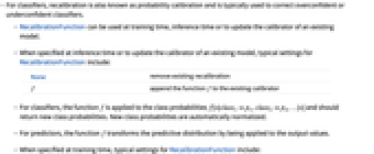 - When specified at inference time or to update the calibrator of an existing model, typical settings for RecalibrationFunction include: