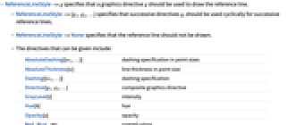- ReferenceLineStyle->{g1,g2,…} specifies that successive directives gi should be used cyclically for successive reference lines.