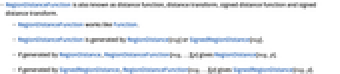 - RegionDistanceFunction is generated by RegionDistance[reg] or SignedRegionDistance[reg].