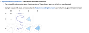 Wolfram Language. (2014). RegionEmbeddingDimension. Wolfram Language & System Documentation Center. Retrieved from https://reference.wolfram.com/language/ref/RegionEmbeddingDimension.html