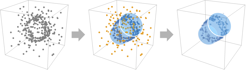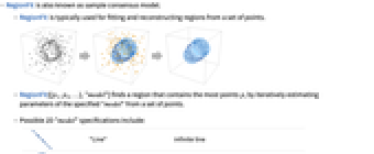 - RegionFit[{p1,p2,…},"model"] finds a region that contains the most points pi by iteratively estimating parameters of the specified "model" from a set of points.