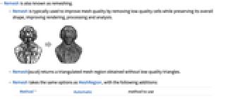 - Remesh[mesh] returns a triangulated mesh region obtained without low-quality triangles.