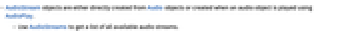 - AudioStream objects are either directly created from Audio objects or created when an audio object is played using AudioPlay.