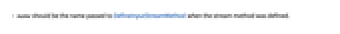 - name should be the name passed to DefineInputStreamMethod when the stream method was defined.