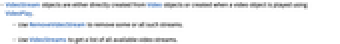 - VideoStream objects are either directly created from Video objects or created when a video object is played using VideoPlay.