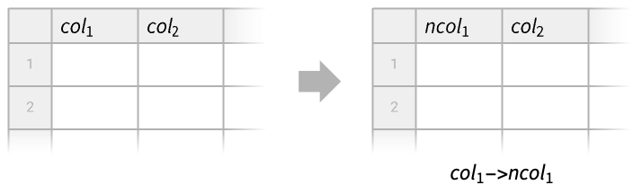 RenameColumns[tab,{col1newcol1,…}]