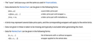 {datei,pi} a pure date-price pair wi[{datei,pi},…] a date-price pair and wrapper wi formi->mi a date-price pair with metadata mi - A brick may represent several date-price pairs, and the corresponding wrappers will apply to the entire brick.