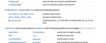 Top,Bottom,Left,Right,Center positions within bricks Above, Below, Before, After positions outside bricks {{bx,by},{lx,ly}} scaled position {lx,ly} in the label at scaled position {bx,by} in the brick - RenkoChart has the same options as Graphics, with the following additions and changes: [List of all options]