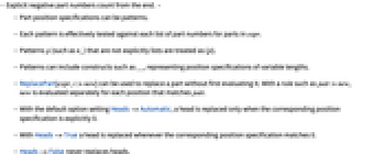 - Each pattern is effectively tested against each list of part numbers for parts in expr.