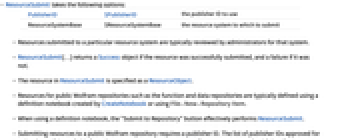- ResourceSubmit[…] returns a Success object if the resource was successfully submitted, and a failure if it was not.