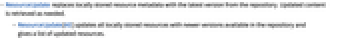 - ResourceUpdate replaces locally stored resource metadata with the latest version from the repository. Updated content is retrieved as needed.