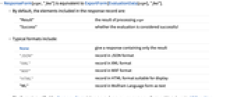 "Result" the result of processing expr "Success" whether the evaluation is considered successful - Typical formats include: