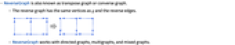 - ReverseGraph works with directed graphs, multigraphs, and mixed graphs.