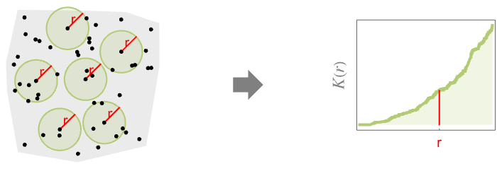 - The radius r can be a single value or a list of values. With no radius r specified, RipleyK returns a PointStatisticFunction that can be used to evaluate the