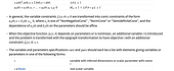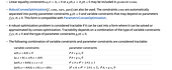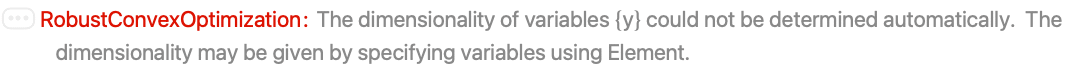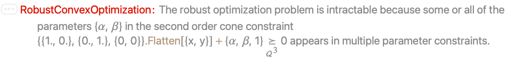 may be included in pcons or vcons. - RobustConvexOptimization[f,cons,vars,pars] can also be used. The constraints cons are automatically separated into purely parameter constraints