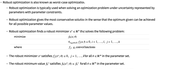 - Robust optimization is typically used when solving an optimization problem under uncertainty represented by parameters with parameter constraints.