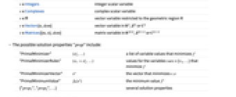 v∈Reals real scalar variable v∈Integers integer scalar variable v∈Complexes complex scalar variable v∈ℛ vector variable restricted to the geometric region