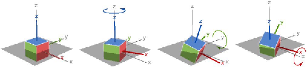 Here are all six of the a-b-c axes rotations. First is the standard z-y-x roll-pitch-yaw rotation:
