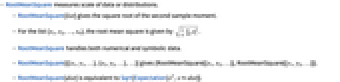 - RootMeanSquare[list] gives the square root of the second sample moment.