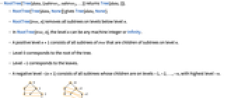 - RootTree[tree,n] removes all subtrees on levels below level n.