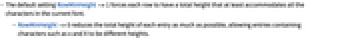 - The default setting RowMinHeight->1 forces each row to have a total height that at least accommodates all the characters in the current font.