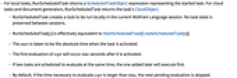 - If two tasks are scheduled to evaluate at the same time, the one added later will execute first.