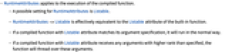 - RuntimeAttributes->Listable is effectively equivalent to the Listable attribute of the built-in function.