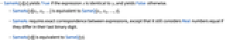- SameAs[y][x] yields True if the expression x is identical to y, and yields False otherwise.