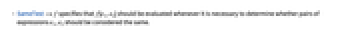 - SameTest->f specifies that f[e1,e2] should be evaluated whenever it is necessary to determine whether pairs of expressions e1, e2 should be considered the same.