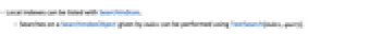 - Searches on a SearchIndexObject given by index can be performed using TextSearch[index,query].