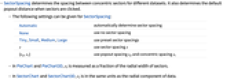 Automatic automatically determine sector spacing None use no sector spacing Tiny,Small,Medium,Large use preset sector spacings s use sector spacing s {sp,sc} use popout spacing sp and concentric spacing sc - In PieChart and PieChart3D, si is measured as a fraction of the radial width of sectors.