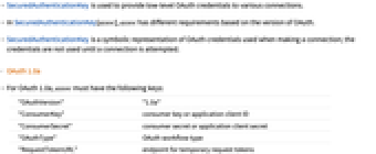 - SecuredAuthenticationKey is used to provide low-level OAuth credentials to various connections.