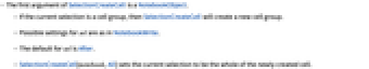 - If the current selection is a cell group, then SelectionCreateCell will create a new cell group.