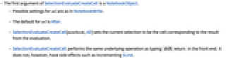 - The first argument of SelectionEvaluateCreateCell is a NotebookObject.