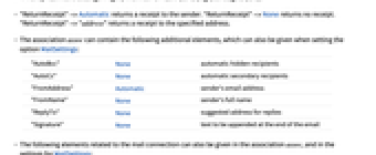- The association assoc can contain the following additional elements, which can also be given when setting the option MailSettings:
