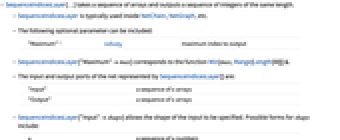 - SequenceIndicesLayer[…] takes a sequence of arrays and outputs a sequence of integers of the same length.