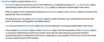- When you apply certain mathematical operations to SeriesData objects, new SeriesData objects truncated to the appropriate order are produced.