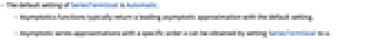 - Asymptotics functions typically return a leading asymptotic approximation with the default setting.