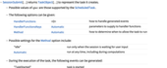 - SessionSubmit[…] returns TaskObject[…] to represent the task it creates.