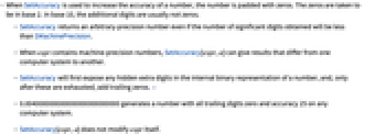- When expr contains machine‐precision numbers, SetAccuracy[expr,a] can give results that differ from one computer system to another.