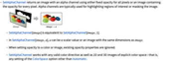 - In SetAlphaChannel[image,a], a can be a scalar value or an image with the same dimensions as image.