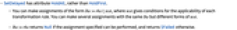- You can make assignments of the form lhs:=rhs/;test, where test gives conditions for the applicability of each transformation rule. You can make several assignments with the same lhs but different forms of test.