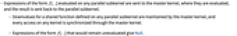 - Expressions of the form f[…] evaluated on any parallel subkernel are sent to the master kernel, where they are evaluated, and the result is sent back to the parallel subkernel.