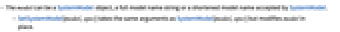 - The model can be a SystemModel object, a full model name string or a shortened model name accepted by SystemModel.
