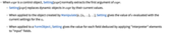 - When expr is a control object, Setting[expr] normally extracts the first argument of expr.
