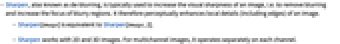 - Sharpen works with 2D and 3D images. For multichannel images, it operates separately on each channel.